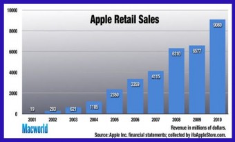 En 2001, Apple abrió 25 tiendas en pequeñas ciudades de Estados Unidos, que generaron pocas ventas (19 millones de dólares), y una cifra no revelada de pérdidas. Pero el esfuerzo ha continuado sin pausa, hasta superar este año los 300 establecimientos, que han multiplicado un 500% la facturación. El sábado 21, abrió sus puertas el de Burdeos, y otras seguirán pronto, pero las grandes urbes latinoamericanas y asiáticas merecerán su atención preferente en los próximos años.