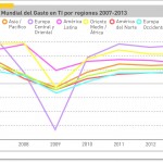 La caída del gasto mundial en TI ha sido severa en todas las geografías, con la única excepción de América Latina, que aporta poco en términos absolutos. De cara al 2010, el desglose del 3,2% previsto como crecimiento global, adquiere notas destacadas en los países BRIC (Brasil, Rusia, India y China), ya que a este bloque se le calculan crecimientos de entre el 8% y el 13%. Más allá, hasta llegar al horizonte 2013, los analistas de IDC prevén un crecimiento sosegado, en el rango entre 4% y 5% mundial, con marcadas diferencias entre regiones.