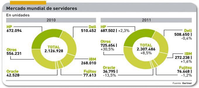 Todas las regiones registraron crecimiento tanto en unidades como en valor, excepto Japón, cuya economía ha sido perturbada por el seísmo de Tohoku y sus consecuencias. Pero el análisis sitúa la tasa más alta en Europa Oriental, con un 36% en valor y un 21,1% en unidades. Asimismo, todas las categoría crecieron, desde los commoditizados servidores x86 (17,5% en valor, gracias a una subida del precio medio) hasta los mainframes (un llamativo 19% en valor); Jeff Hewitt, responsable del estudio, subraya que el segmento Unix con arquitectura RISC/Itanium “finalmente ha salido del bache, creciendo un 5,2% en unidades despachadas y un 20,7% en ingresos”. En principio, es una indicación de que la demanda de servidores de gama media ha entrado finalmente en un “ciclo de refresco”, después de haber sido duramente afectada en 2009 y 2010. El mercado de servidores blade ha sido el más vigoroso, con un crecimiento que duplica la ratio del mercado total, aparentemente relacionado con el auge de la virtualización. Después de varios años de inmutable consolidación (los tres primeros aportan el 80% de los ingresos), la entrada de Cisco ha contribuído a mover un poco el segmento: en menos de dos años, su familia UCS ha conquistado el 9,4% de la categoría blade, desplazando del segundo puesto a Dell (8,4%). El mercado español es un caso aparte. El estudio que elabora periódicamente IDC muestra una severa caída secuencial sobre el cuarto de 2010.
