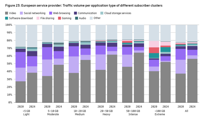 El cambio principal que ha habido a lo largo de 2024, y se ha acelerado en los primeros meses de 2025, es el incremento de las redes 5G, con la contracción de las generaciones anteriores. Según Ericsson, pues, a finales de 2024 alrededor de una cuarta parte de las suscripciones móviles eran 5G y a finales de este año ya serán una tercera parte. Para finales de 2030, prevé que haya en el mundo 6.300 millones de suscripciones 5G, sobre un total de 9.400 millones. A partir de 2027, ya habrá más suscripciones 5G que 4G, pronostica Ericsson.